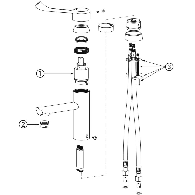 Einhebelmischer BIOCLIP: Armatur vollständig abnehmbar zur Reinigung und Desinfektion.