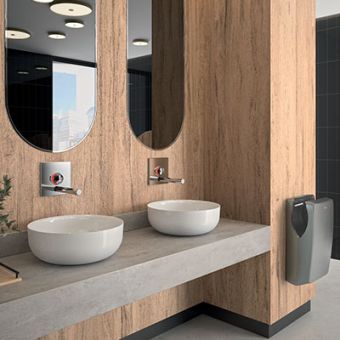 • Waschplatz-Spiegelkombination, Seifenspender, Händetrockner, Abfallbehälter…