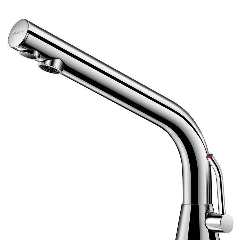 Seitlicher, langer Mischhebel mit einstellbarer Warmwasserbegrenzung.