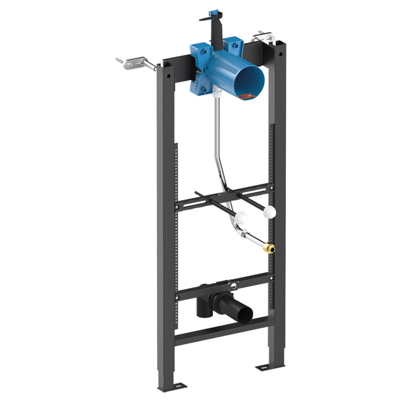 Gestell aus pulverbeschichtetem Stahl schwarz für Vorwandmontage.