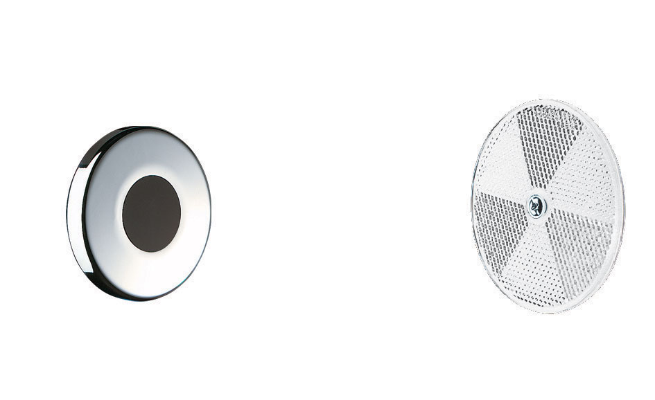 Unterputz-Infrarotsensor Ø 50 und Reflektor Ø 85.