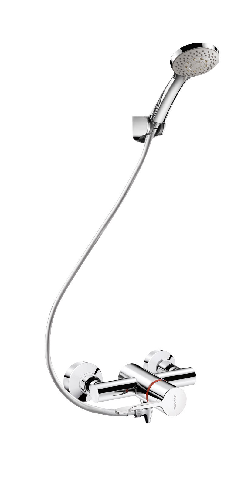 • Brausearmatur mit sequentieller, verkalkungsarmer Thermostatkartusche: