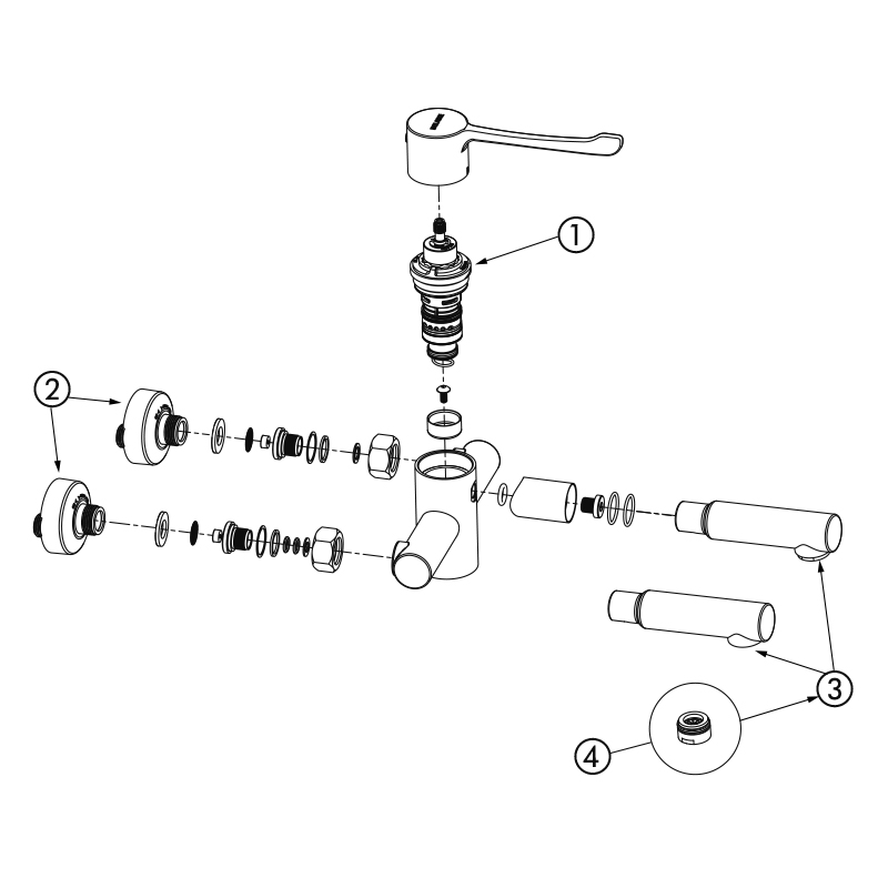 Sequentielle Mischbatterie geeignet für bewegungseingeschränkte Personen.