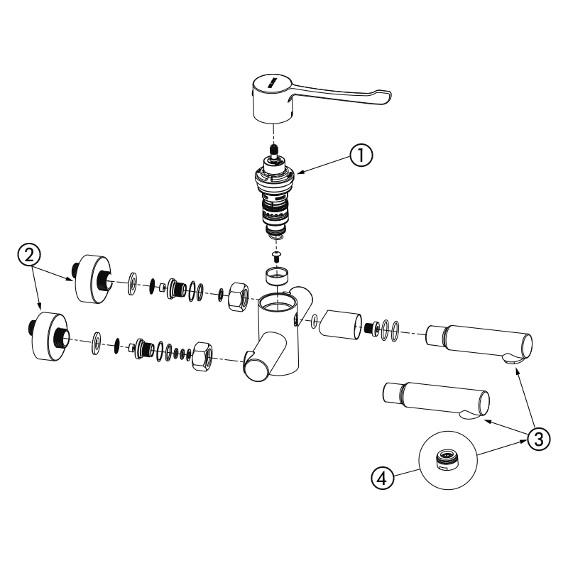 Sequentielle Mischbatterie geeignet für bewegungseingeschränkte Personen.