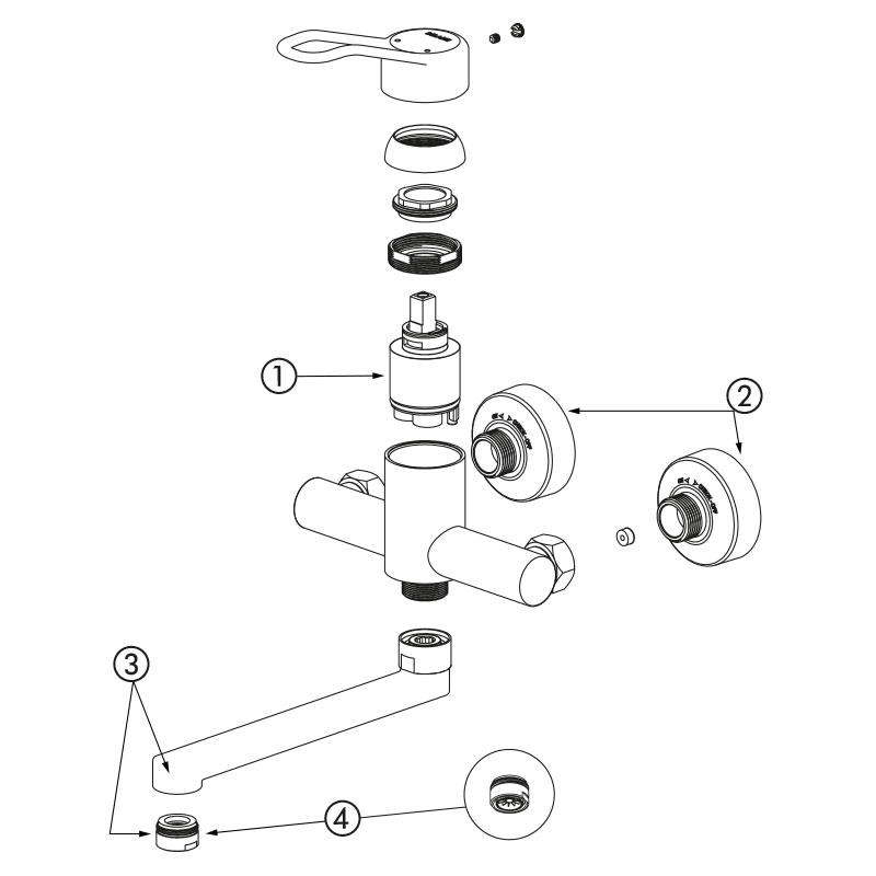 Art. 2445Waschtisch-Einhebelmischer für Wandmontage.