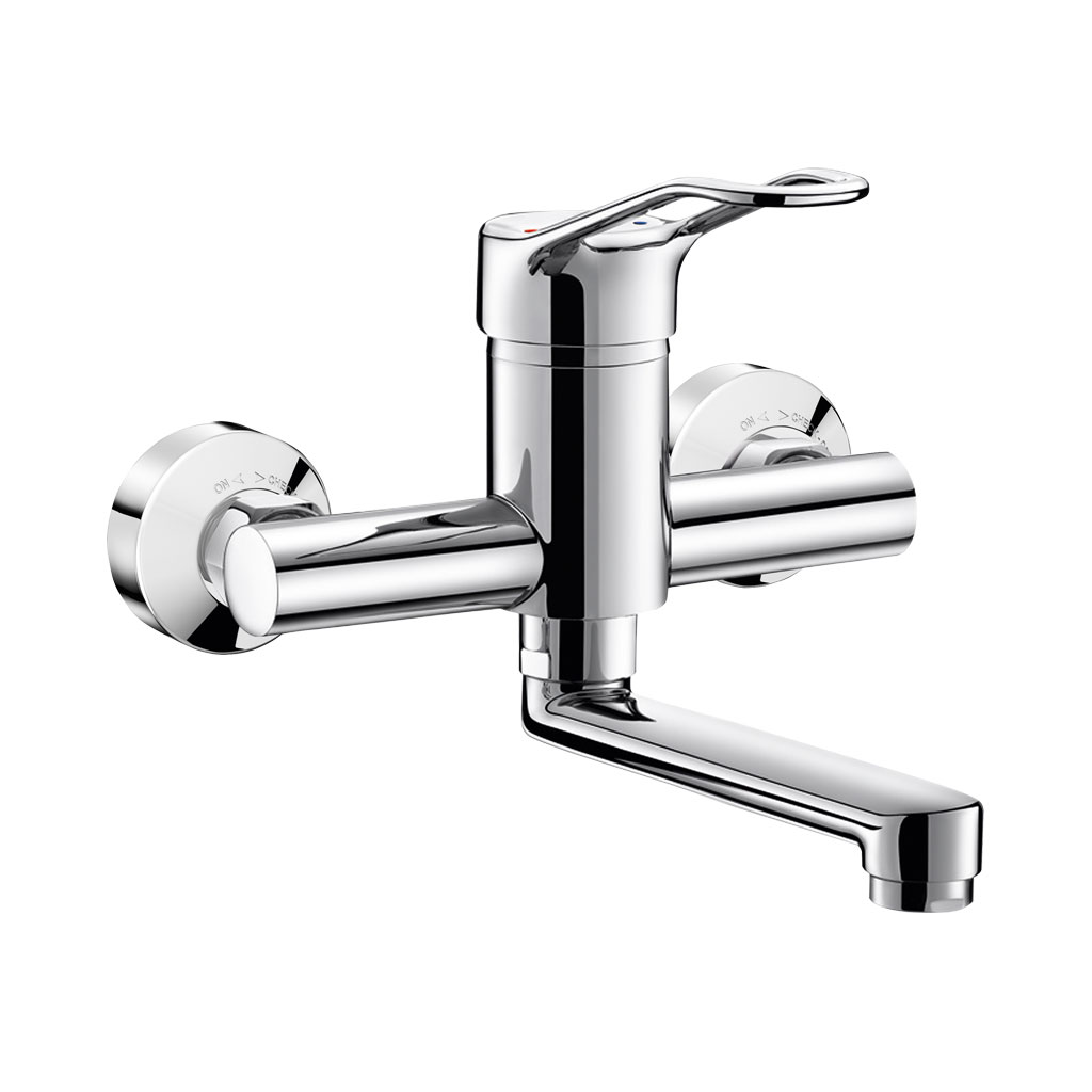 Mischbatterie für Wandmontage mit Schwenkauslauf L.150, Bügelgriff