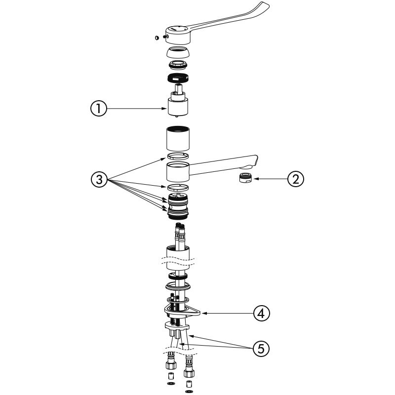 Hoher Einhebelmischer für Einlochmontage mit Keramikkartusche