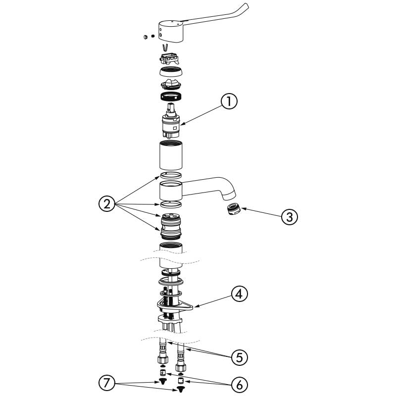 Einloch-Mischbatterie für bewegungseingeschränkte Personen geeignet.