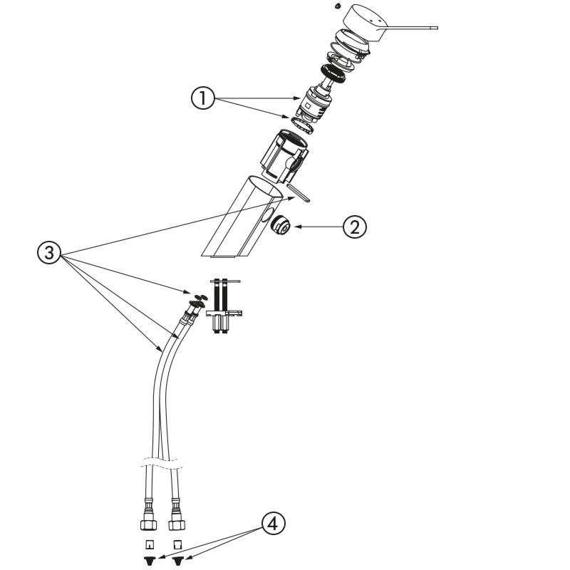 Einhebelmischer für Einlochmontage ohne Auslauf H. 50 L. 80