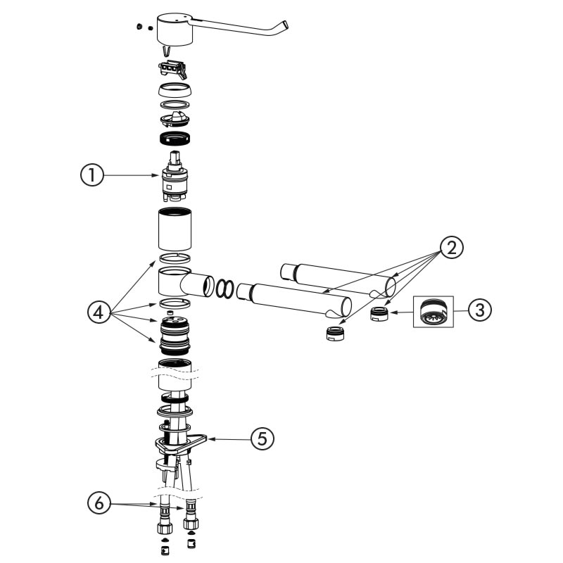Hoher Einhebelmischer für Einlochmontage mit Keramikkartusche