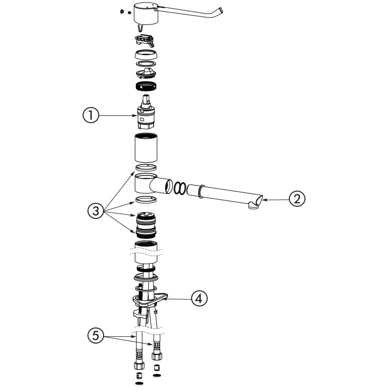 Hoher Einhebelmischer für Einlochmontage mit Keramikkartusche
