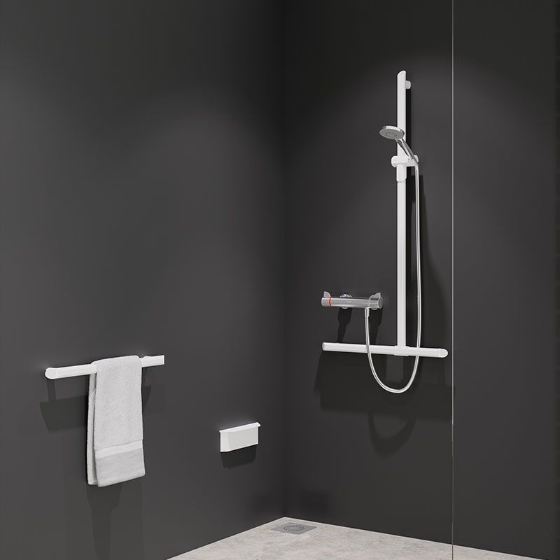 Art. 511944WBe-Line® Handlauf T-Form Ø 35 mit vestellbarer, vertikaler Brausestange für Dusche.