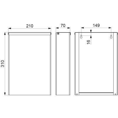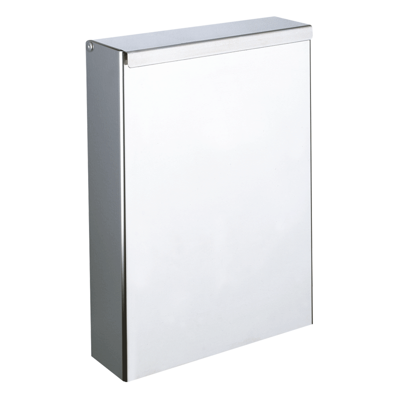 Art. 465Rechteckiger Edelstahl-Abfallbehälter für Papierhandtücher extraflach für Wandmontage.