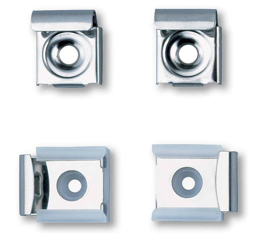 Set mit 4 Halterungen, davon 2 mit Feder.