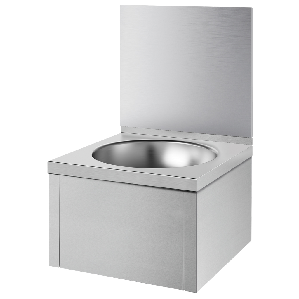 Edelstahl satiniert - für Armaturen mit Kniebetätigung - Mit Rückwand