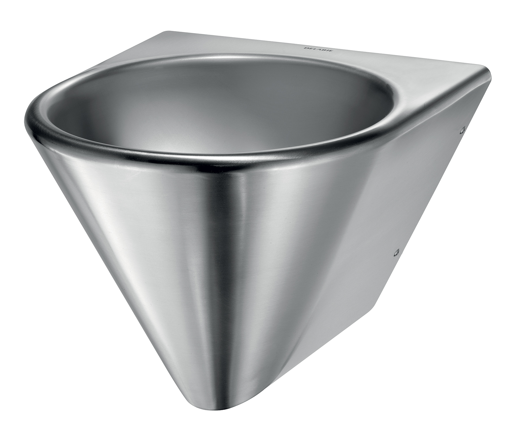 Vandalenschutz: Handwaschbecken unten geschlossen, Siphon verdeckt, verstärkte Wandmontageplatte.