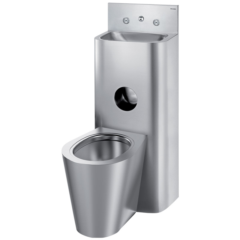 WC vollständig am Gehäusekörper verschweißt, nicht verschraubt: erleichtert die Reinigung und schützt gegen Verbergen von Gegenständen.