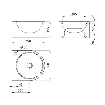 Art. 121800Handwaschbecken für Wandmontage, 360 x 390 mm.