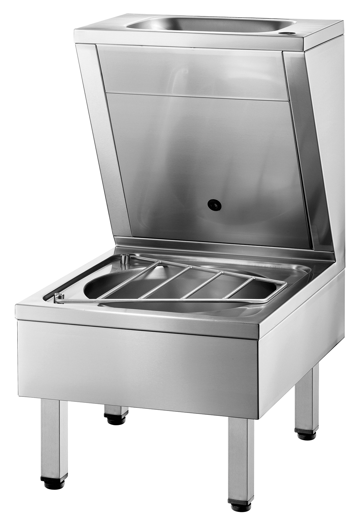 Mit Edelstahl-Klapprost als Eimerauflage.