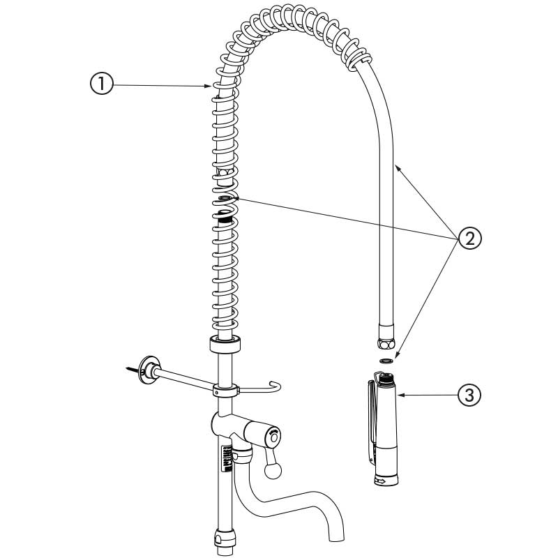Modell ohne Armatur, als Komplettset zur Reparatur bestehender Geschirrspülbrause-Garnituren.