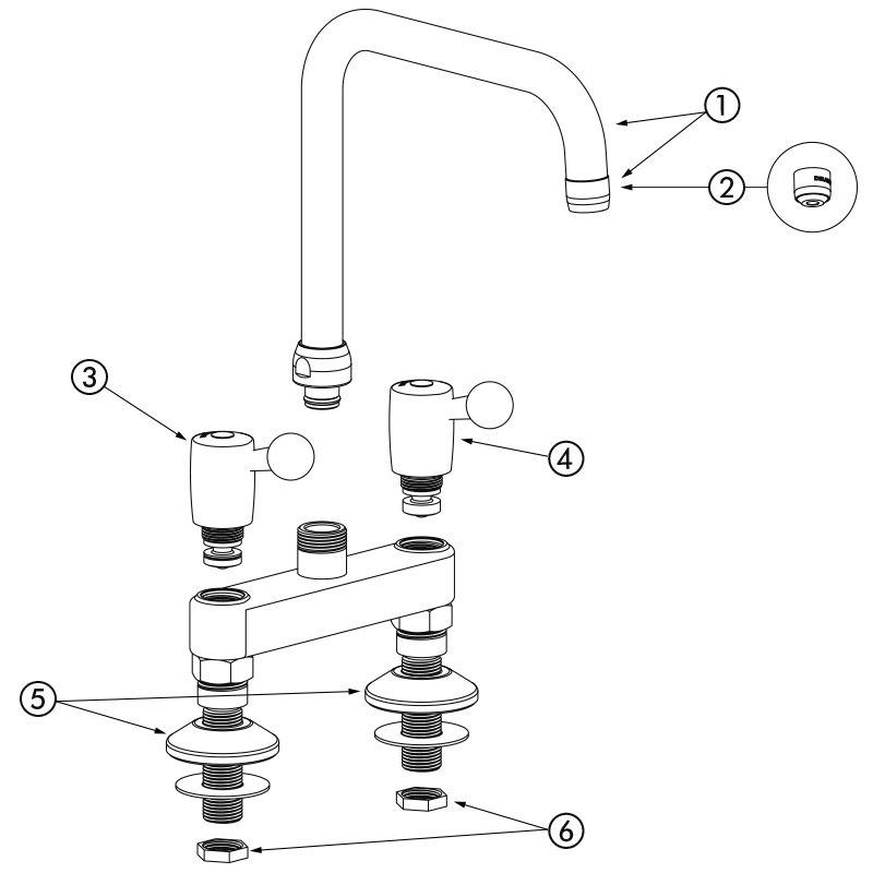 5641T3 | Zweigriffmischer für Zweiloch-Standmontage - 60 l/min - H. 220 L. 300 - Mittenabstand 150 mm | 434,12 € o. MwSt. |