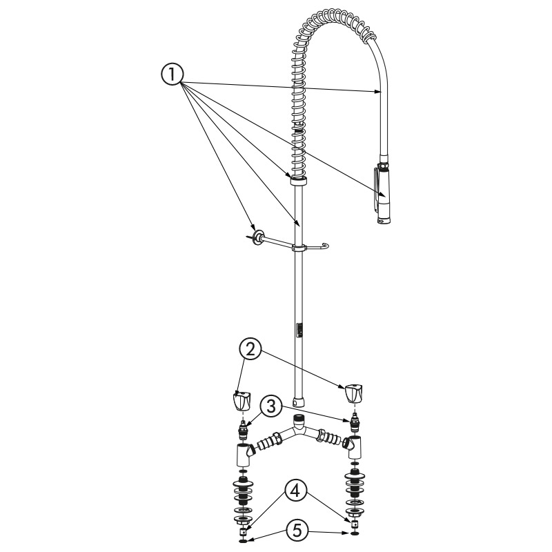 Art. G6533Geschirrspülbrause-Garnitur komplett ohne Auslaufventil, geeignet für die intensive Nutzung in Großküchen.