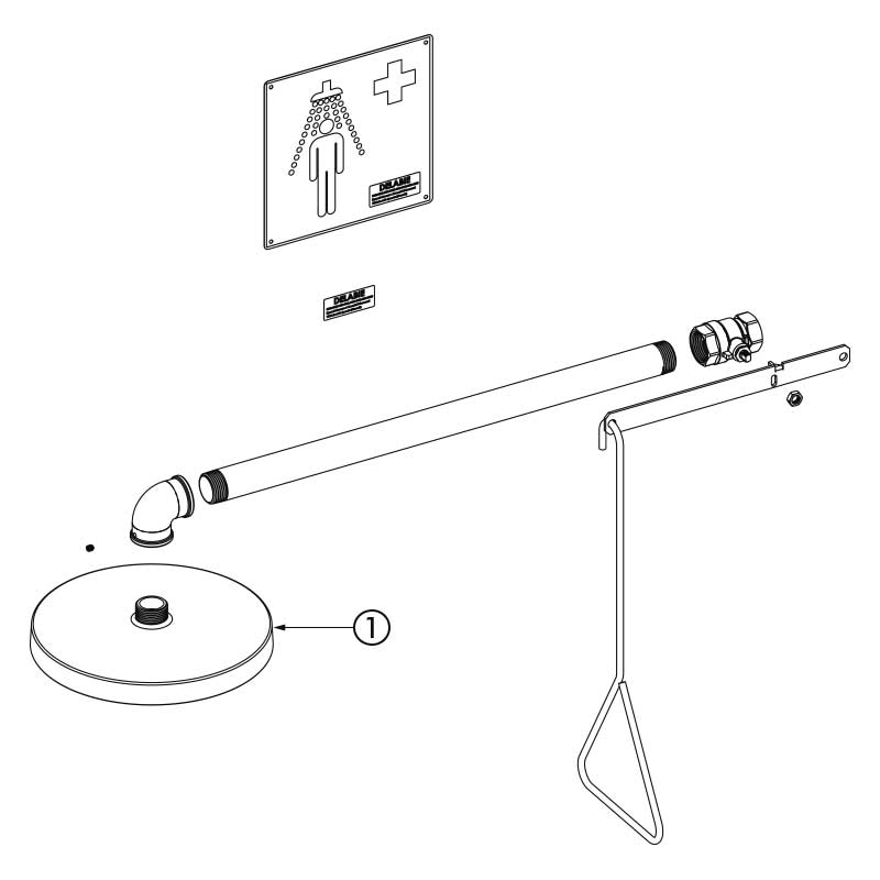 Art. 9108Notdusche für UP-Wandmontage mit Handbetätigung augestattet mit: