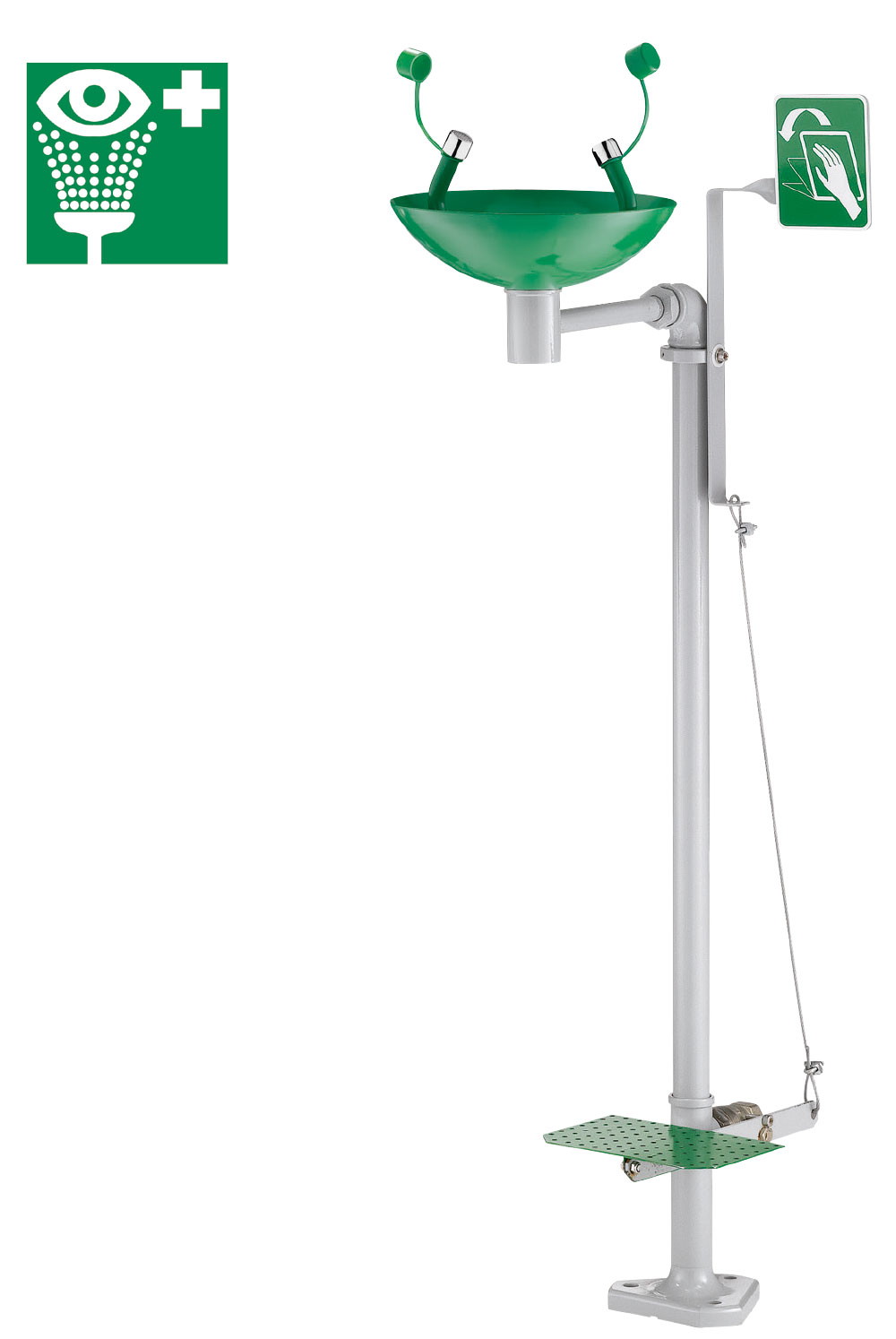 Art. 9201Augendusche auf Säule mit Hand- und Fußbetätigung ausgestattet mit: